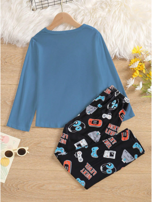 Tween Boys' Letter & Game Console Print Pajama Set