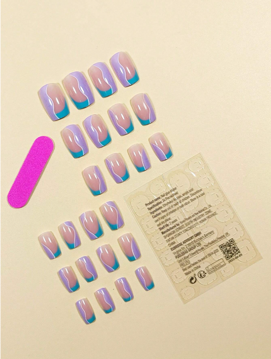 24pcs Short Square French Style Abstract Line Art Fake Nail