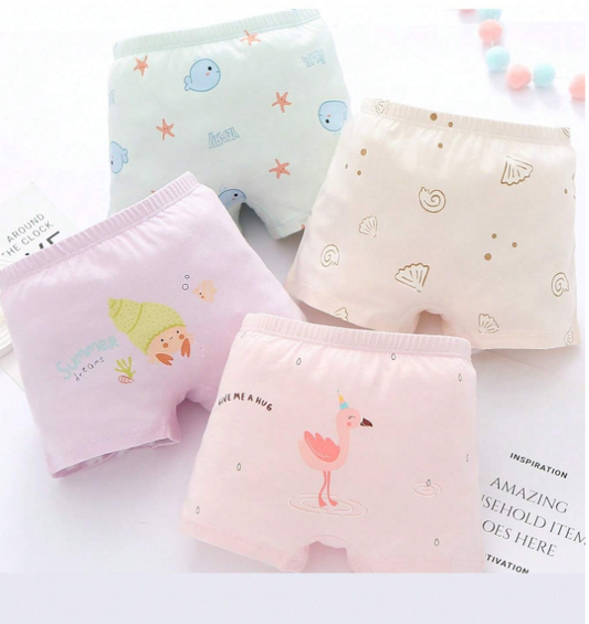4pcs/set Girls' Cartoon Printed Boxer Shorts