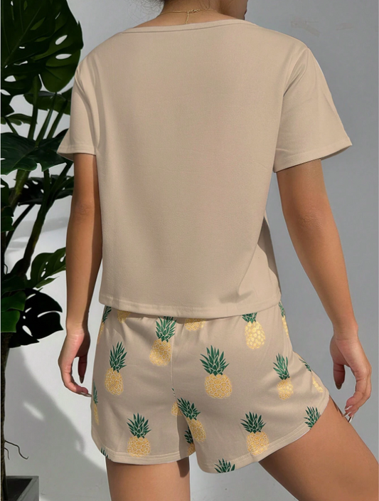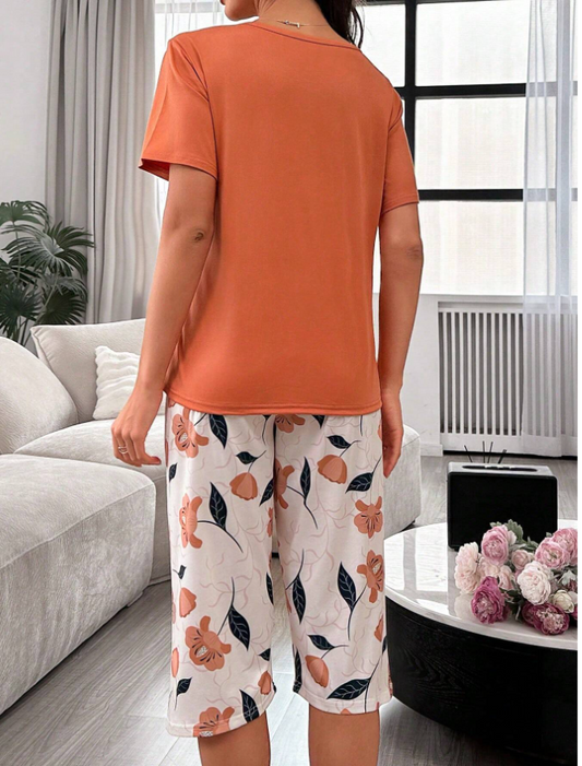 Women English Letter Print Short Sleeve T-Shirt And Long Pants Casual Pajama Set