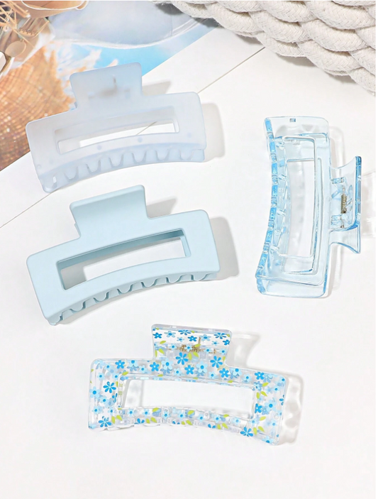 4pcs Solid Rectangle Hair Claw For Thick Hair