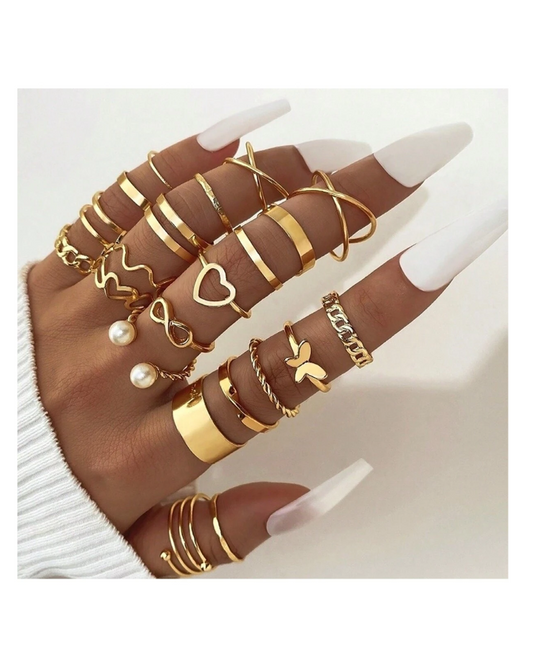 22pcs European & American Style Heart & Butterfly Design Knuckle Rings Set