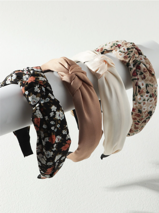 4pcs Flower Print Knot Boho Trim Vintage Decor Headbands
