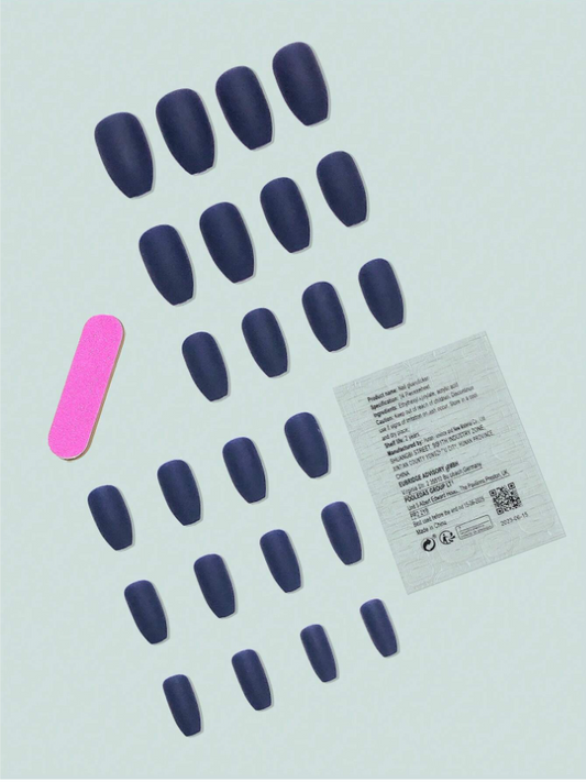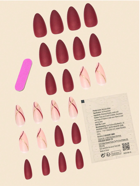 24pcs/Set Burgundy Matte False Nails With Gold Stripe