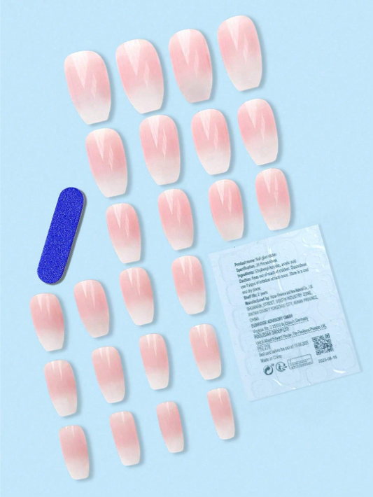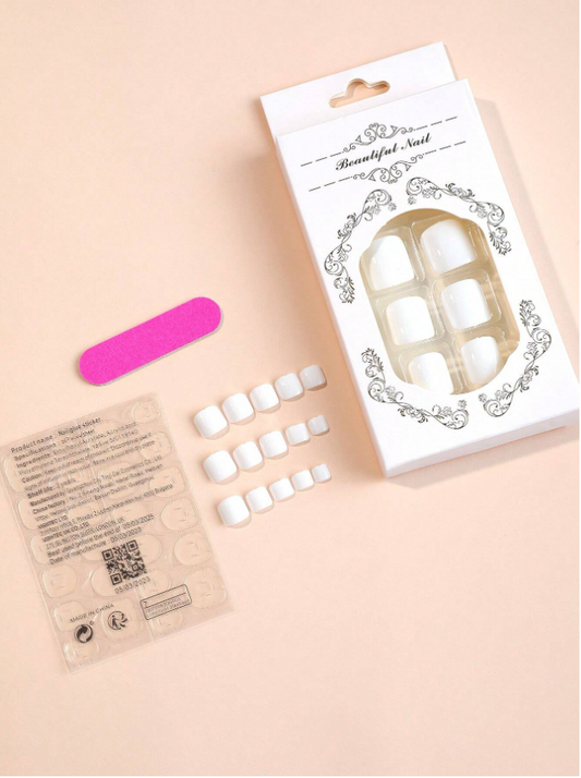 24pcs Short Waterdrop Shaped Black & White Striped Design European Style Nails