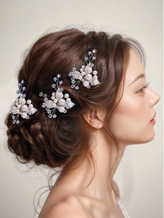 1set Handmade U-Shaped Hairpin For Brides With Leaf Design
